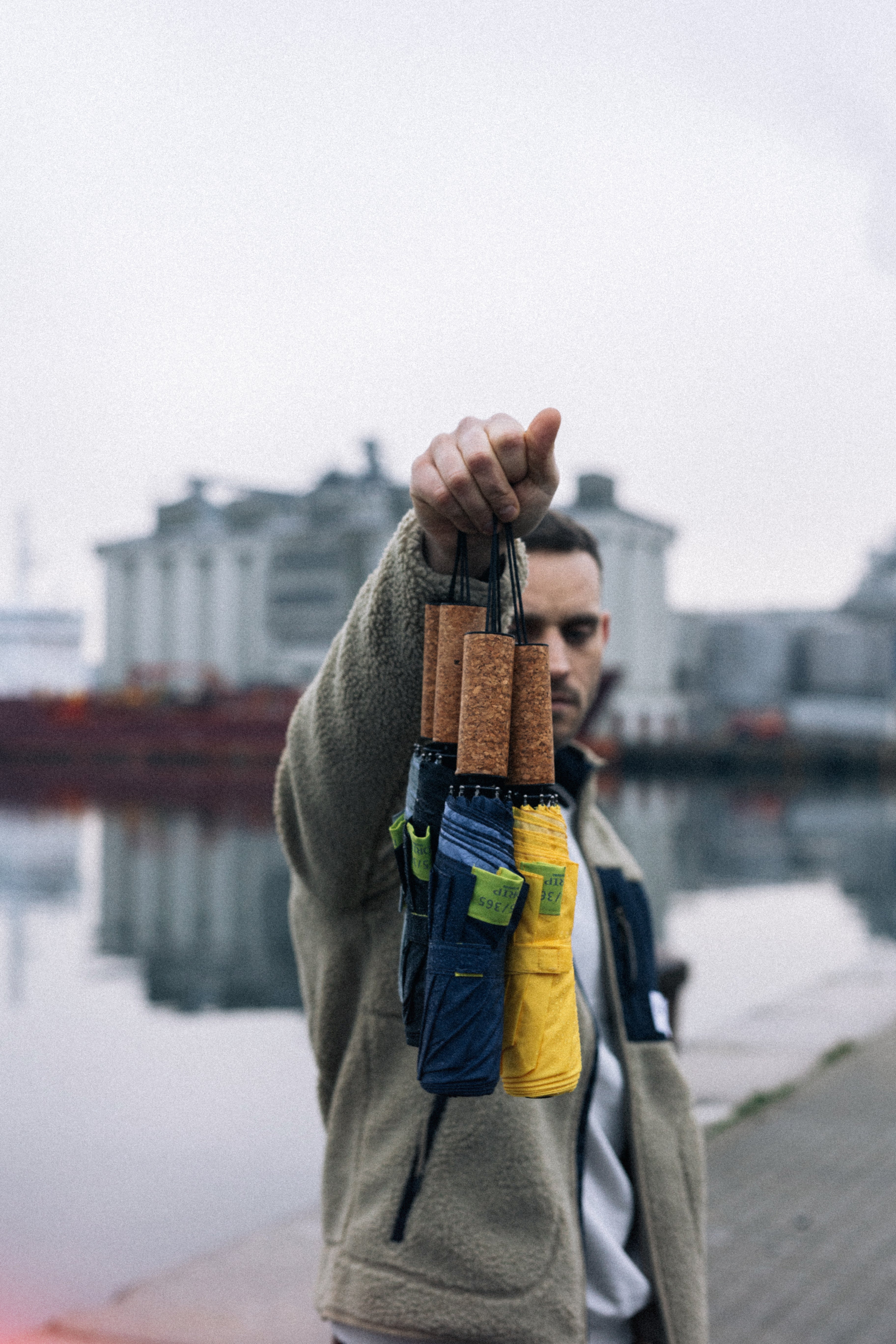 Stoffet på DRIP paraplyerne er lavet med 100% rPET materiale (recycled polyethylene terephthalate) som f.eks. kommer fra genanvendte plastikflasker.