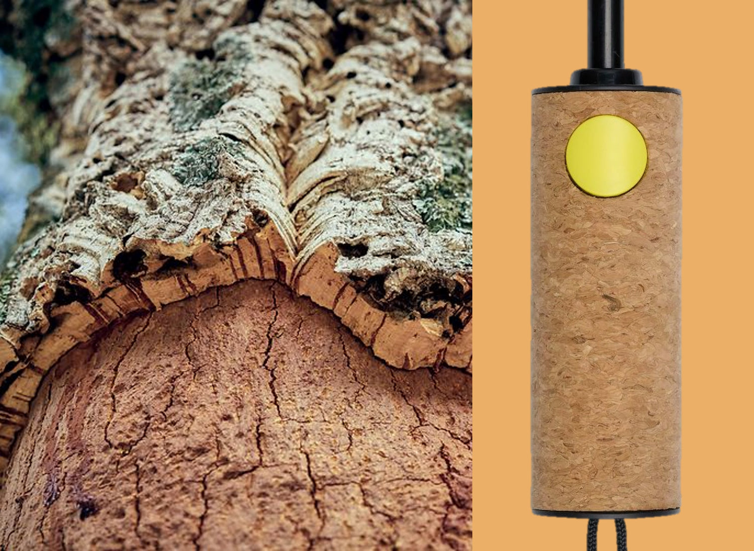 Cork comes from the bark of cork oak trees. In fact, the cork oak is the only tree that does not die when the bark is removed. Cork oak trees can live to be around 160 years old and every 9 years the cork bark can be gently 'harvested'. As the bark grows back over time, it pulls huge amounts of CO2 out of the air.